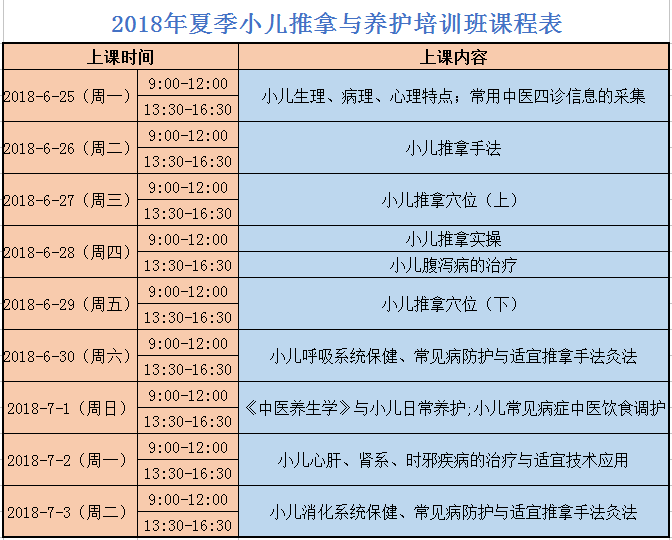 现代研究证实,人一生80%-90%的运动技能、语言、认知、良好的人格形成等都取决于小儿时期奠定的基础,因此,对小儿采用科学的养护与保健关系到小儿一生的健康。3044am永利集团学院常年开设小儿推拿与养护培训班,开设的课程主要结合小儿的生理特点,对其日常营养、护理、智力开发等方面进行科学专业的指导;并对小儿腹泻、感冒、食积、惊风、夜啼等常见疾病,进行中医诊断、家庭护理常识、中医饮食调护和小儿推拿保健的讲解和实践操作指导。学习期满,经考核合格者,颁发永利集团3044am官方入口教育培训结业证书。