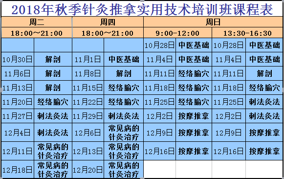 上课时间:2018年10月28日~12月20日,具体详见《课程表》
