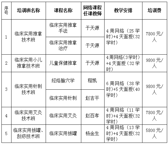 培训班简介:中医适宜技术包括针灸、推拿、艾灸、刮痧、拔罐等,具有“简、便、验、廉、效”的特点,本中医适宜技术系列培训班主要教授中医适宜技术最实用、最精华的技术手法和治疗方法,充分发挥其在常见病、多发病、慢性病的预防、保健、康复和治疗方面的独特作用。本系列培训班采用线上线下相结合的培养模式,充分发挥“互联网+中医教育”,人人皆学、处处能学、时时可学的优势,大力开展中医适宜技术实用技能培训,提升从业人员和相关人员的中医药服务能力,充分发挥中医适宜技术在疾病康复、老年人孕妇儿童等特殊人群养护、养生保健及治未病中的关键作用,在常见病、多发病、慢性病康复中的核心作用,在重大疾病治疗中的协调作用。
